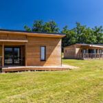 - 3 cottages en bois, parfaitement intégrés à la nature, d’une capacité de 6 couchages chacun, aux surfaces de 35 m², 35 m² et 43 m², alliant charme, confort et authenticité (dont un accessible PMR)